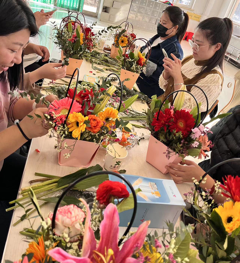 阳春三月,春意浓浓。中国银行太原平阳支行来访锦绣大象农牧总部,开展女员工插花活动,在总部办公的近30名女性参加活动。