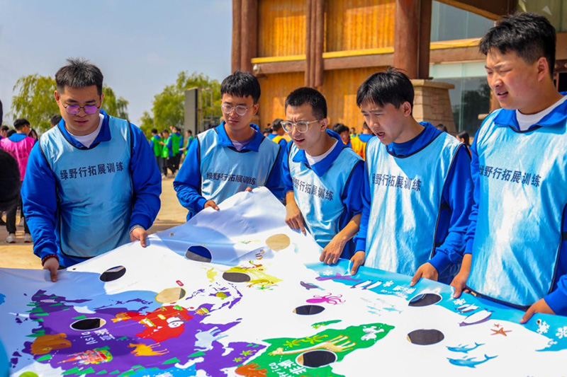 16日全天为拓展训练。早晨的跑操让大家保持着身体的活跃和敏捷,以良好的状态投入到一天的拓展训练中;摞高塔游戏能够帮助团队成员们更好的理解团队合作的重要性,通过绳子合力将木块摞得高而稳固,很好的锻炼了团队成员的互动协作能力,也显现了有效沟通的魅力;小球“环游世界”中每个人都需要找到自己的位置,密切观察其他队员的变化,及时调整球的方向和力度,锻炼了团队共同面对挑战的应急能力;在搭建船帆的过程中,大家根据图纸进行不断地尝试和调整,直到达到最理想的效果。伴随着现场人员的呐喊声和鼓掌声,标有“锦绣大象,扬帆起航”的巨幅彩帆缓缓升起,人们看着自己的劳动成果激动得欢呼跳跃,将整个拓展训练氛围推向了高潮。