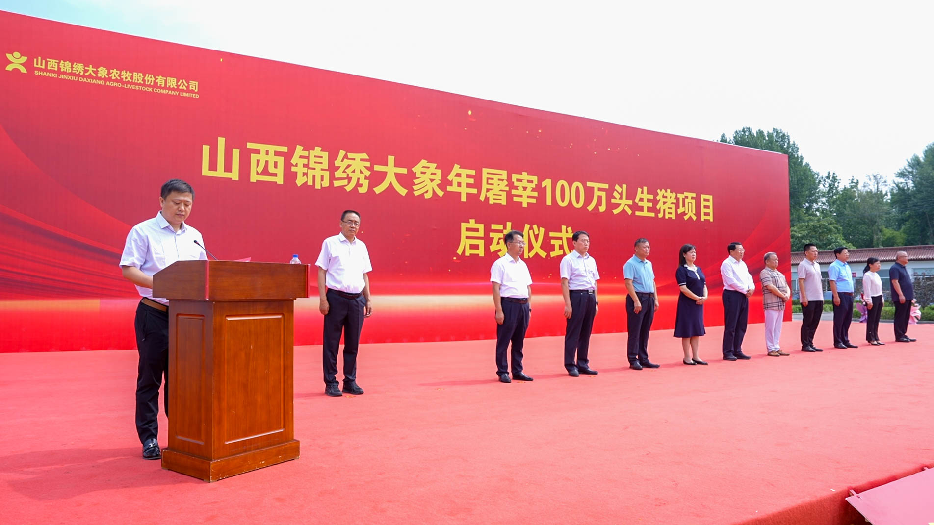 7月1日,山西锦绣大象年屠宰100万头生猪项目启动仪式在清徐县新大象食品科技有限公司隆重举行。太原市人大常委会副主任、清徐县委书记王剑峰,省农业农村厅原副厅长雷郭堂,省农业农村厅总农艺师李慧芳,太原市农业农村局四级调研员郭凯虎,清徐县副县长刘紫霞,锦绣大象名誉董事长吕锐锋,董事长、总经理吕浩,常务副总经理刘文革以及省、市、县各职能部门相关负责人与全国各地的合作伙伴出席此次活动。