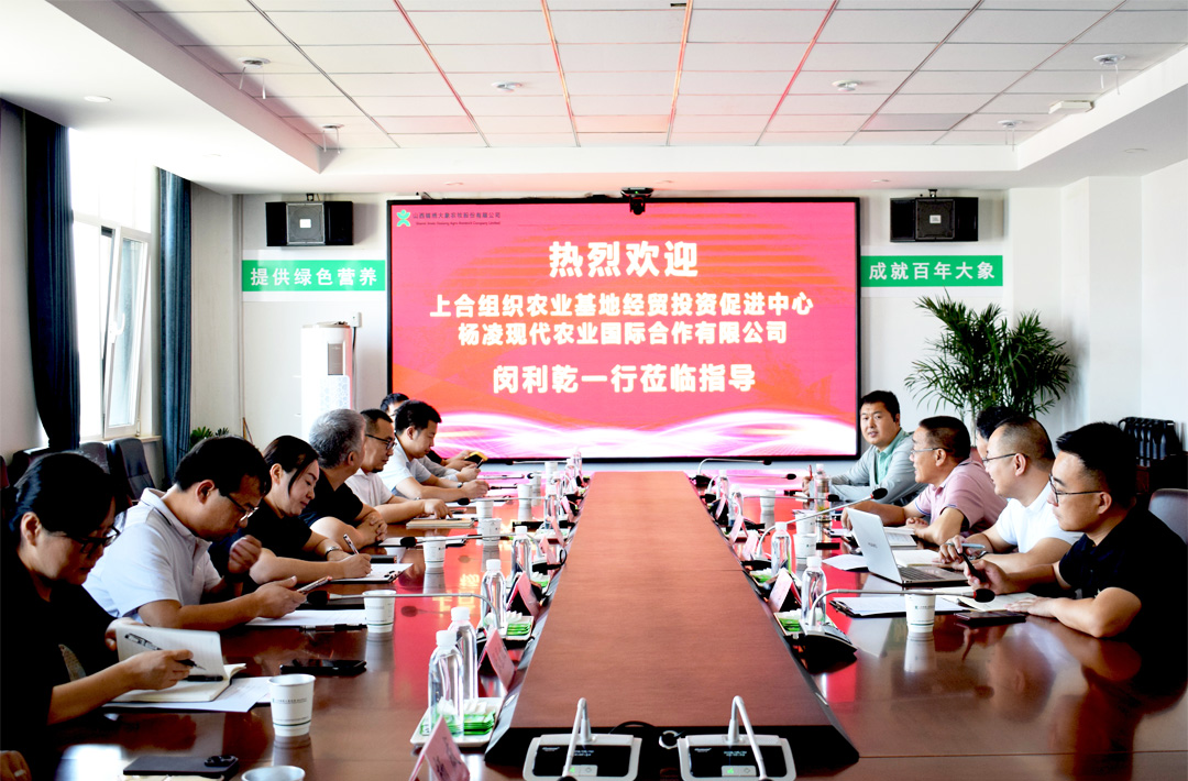 暮春渐远初夏来,最美人间五月天。5月30日,上合组织农业基地经贸投资促进中心主任、杨凌现代农业国际合作有限公司董事长、总经理闵利乾、总经理闵利乾,山西农宜生物有限公司董事长郝利杰,杨凌国合跨境贸易有限公司董事长王红珠一行来到集团总部调研,