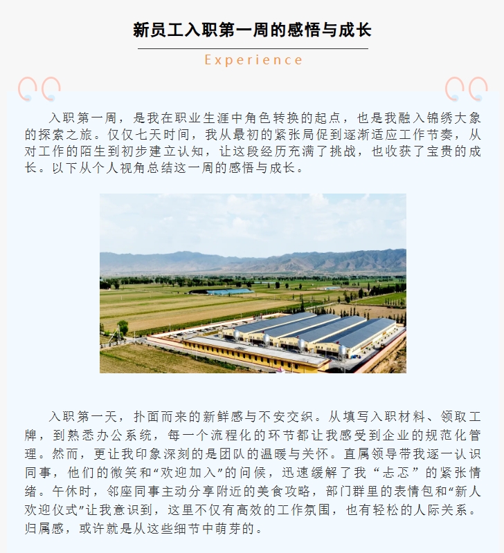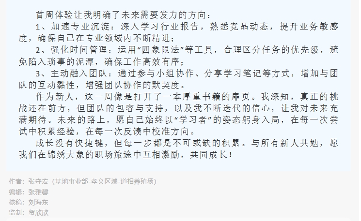 专栏丨心得分享(三):“初入锦绣,步履不停”——新员工入职第一周的感悟与成长