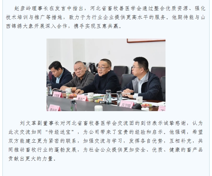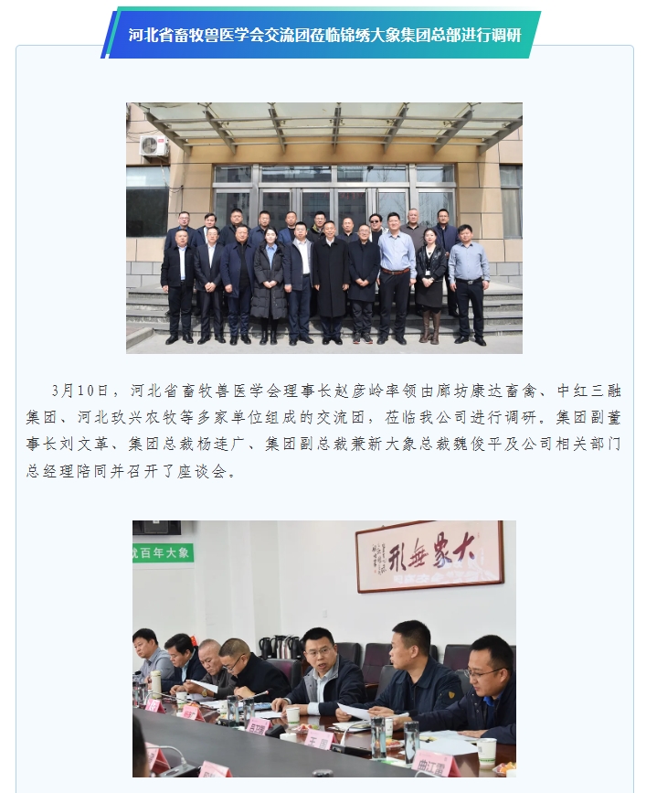 河北省畜牧兽医学会交流团莅临锦绣大象集团总部进行调研