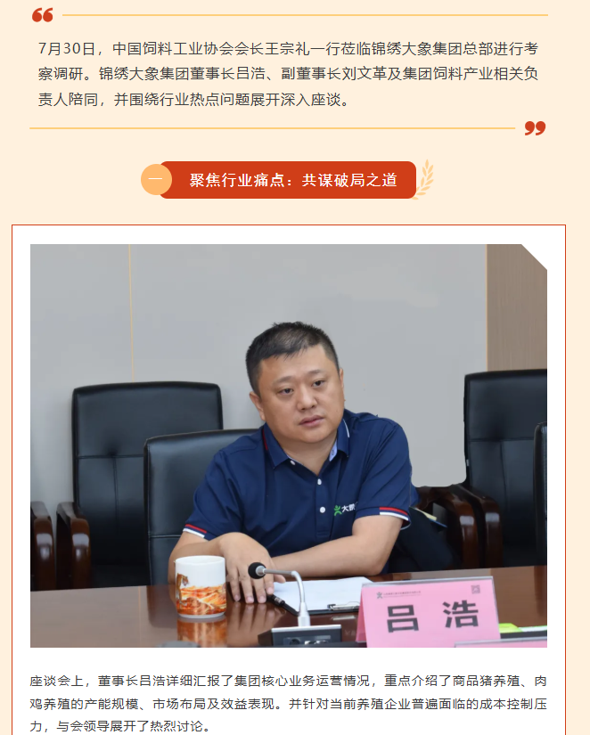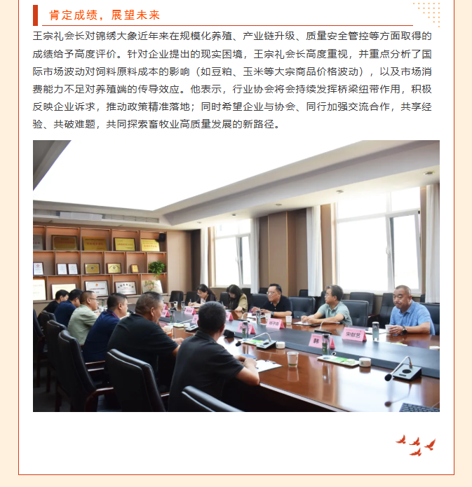 中国饲料工业协会会长王宗礼一行莅临锦绣大象考察调研:共话畜牧业高质量发展新路径