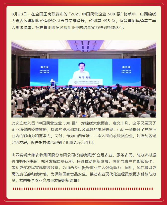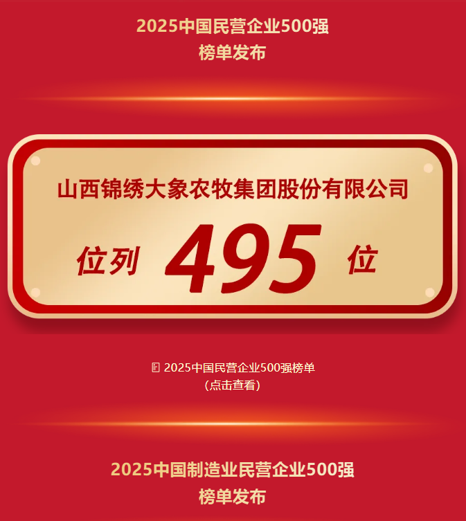 喜报!2025 中国民营企业 500 强重磅发布!锦绣大象再度荣耀登榜