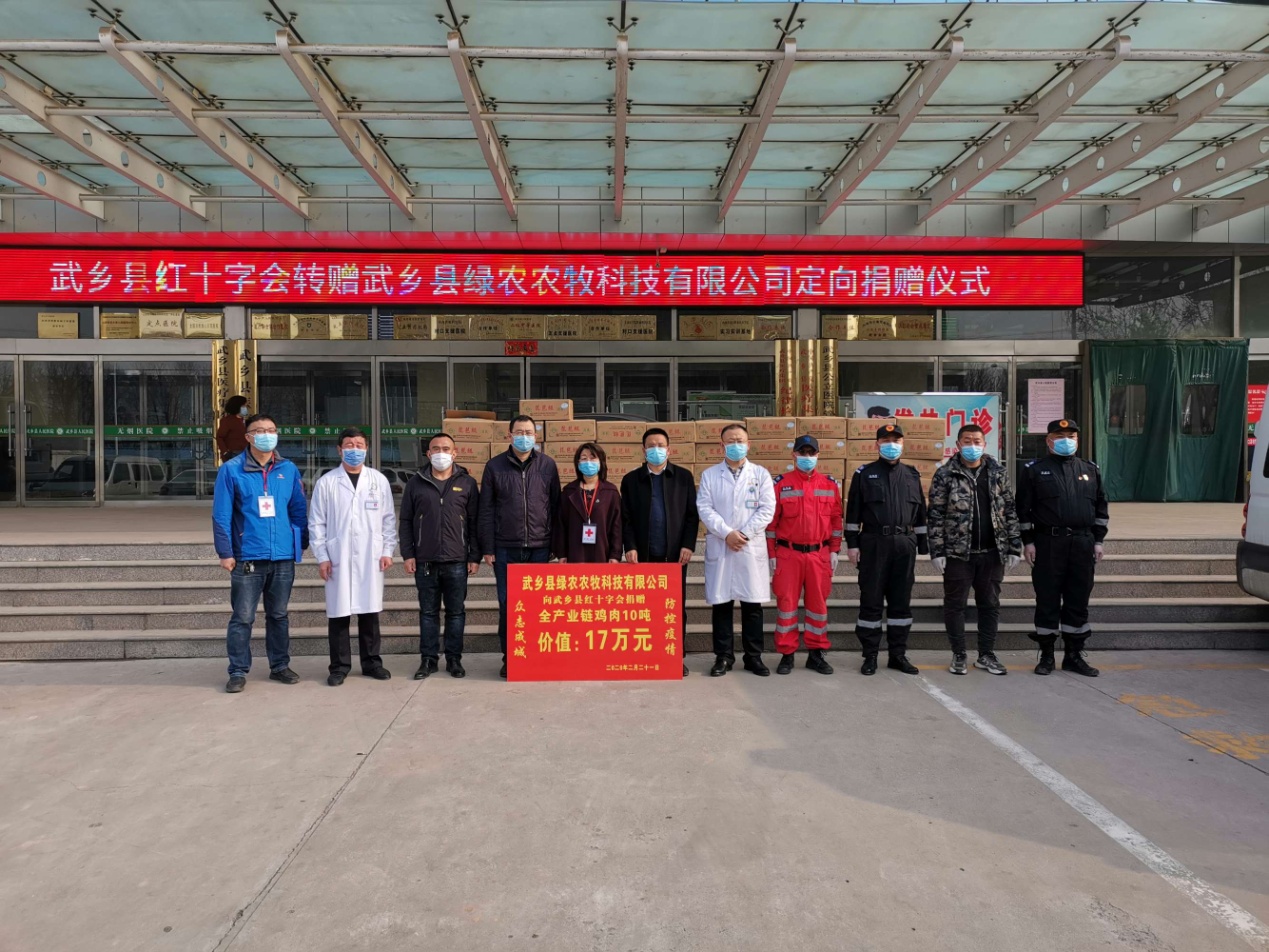 3月6日,山西大象农牧集团武乡县绿农农牧科技有限公司通过向武乡县红十字会捐赠价值17.25万元的全开云(Kaiyun.com)官方网站-体育品牌领航者 鸡肉10吨,以表达公司对坚守在疫情防控一线岗位人员的崇高敬意,也展现出山西大象农牧集团积极响应属地政府部门号召,义无反顾、不计成本,坚决打赢这场疫情防控阻击战的信心和决心。